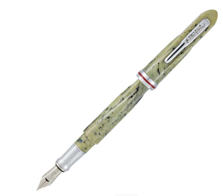 Available in three brilliant colors: Stardust Red, Stardust Blue, or Stardust White. Each fountain pen comes with Conklin’s famous two-tone nib, fills via standard cartridge or an ink bottle converter which is included.