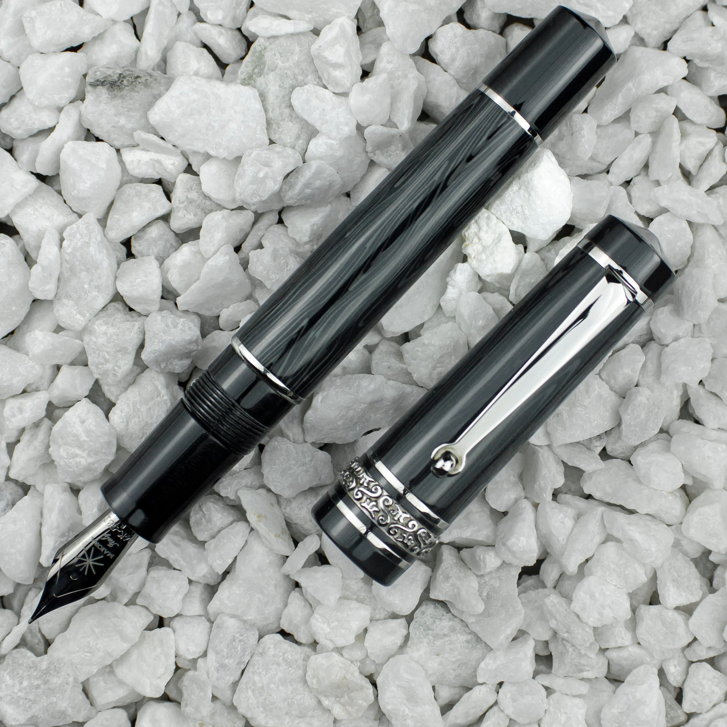 Each pen is fitted with a 14k gold, ruthenium-plated nib.