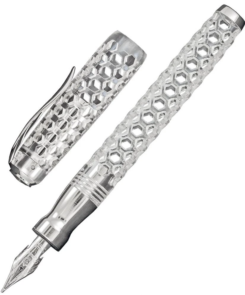 Pineider Limited Edition Honeycomb Fountain Pen, Sugar White